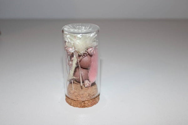 Glazen buisje met kurken stop uitgewerkt in roze
