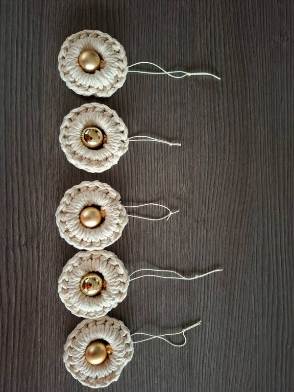 Ambachtelijk Gehaakte Houten Kerstringen met Kerstballetjes