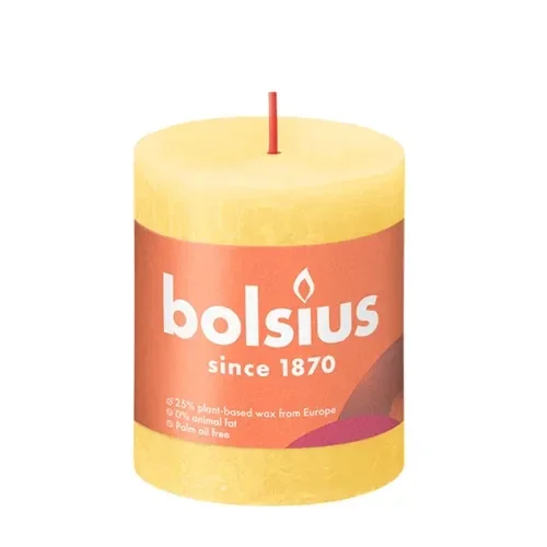 Ontdek de sfeervolle charme van de rustieke kaarsen van Bolsius. Met hun robuuste, matte uitstraling en warme kleuren zijn deze kaarsen ideaal om jouw interieur extra gezellig te maken. De tinten goud, roze en geel passen perfect bij feestelijke momenten, maar ook bij een knus avondje thuis.