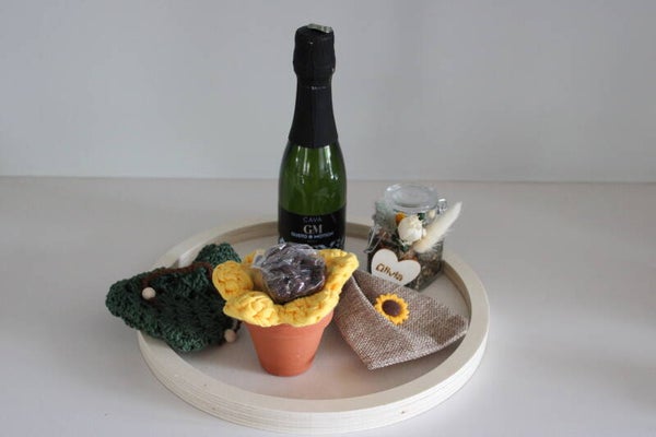 Breng zon en vrolijkheid naar je geboortefeest met dit originele pakket uit onze Gele Bloemen-collectie. Een luchtige mix van bubbels, frisse groentinten en warme accenten: ideaal voor een doopsuikerpresentatie die net dat tikkeltje anders is.