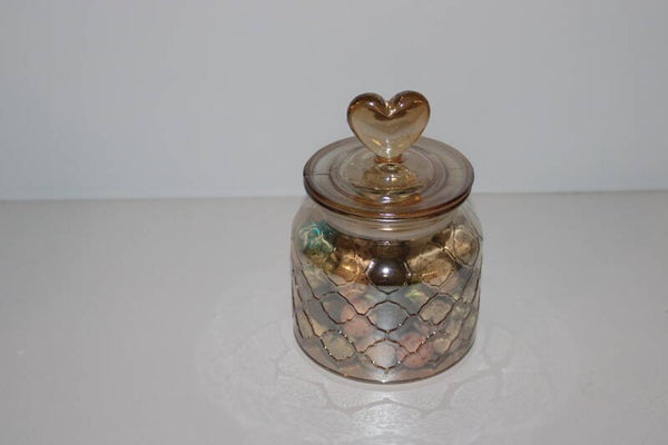 Amberkleurige Glazen Pot met Hartvormige Deksel