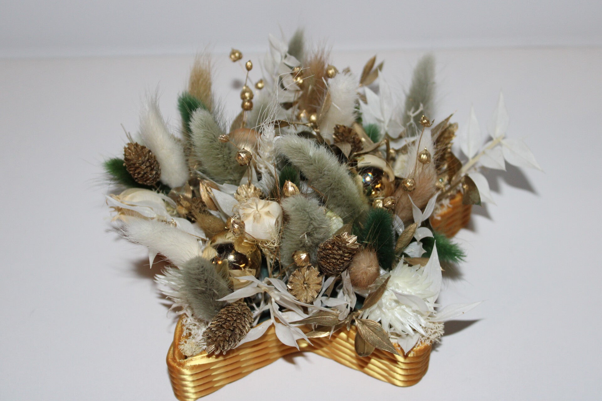 ✔️ Gevuld met droogbloemen in wit, groen en goud