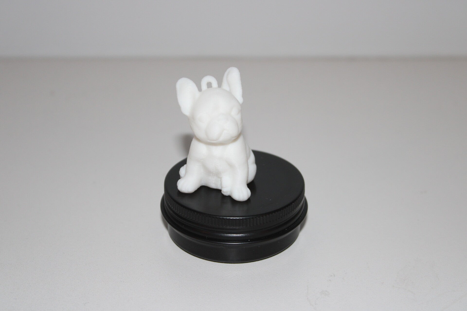 3D-geprint hondje (in bulldog-stijl) op een zwart potje